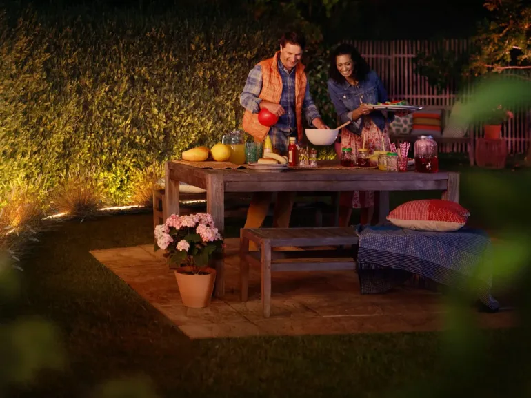 Philips Hue Outdoor Lightstrip -valonauhan avulla teet ulkoalueista yksilöllisiä. Ulkokäyttöön tarkoitetun, taipuisan LED-valonauhan pituus on kaksi metriä.