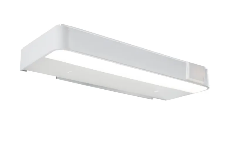 Metallinen LED-valaisin, leveys 650 mm. Valaisin on IP 44 -luokiteltu ja sopii kaikkiin metallista ja puusta valmistettuihin kaappeihin. Mukana pistorasia vasemmalla.