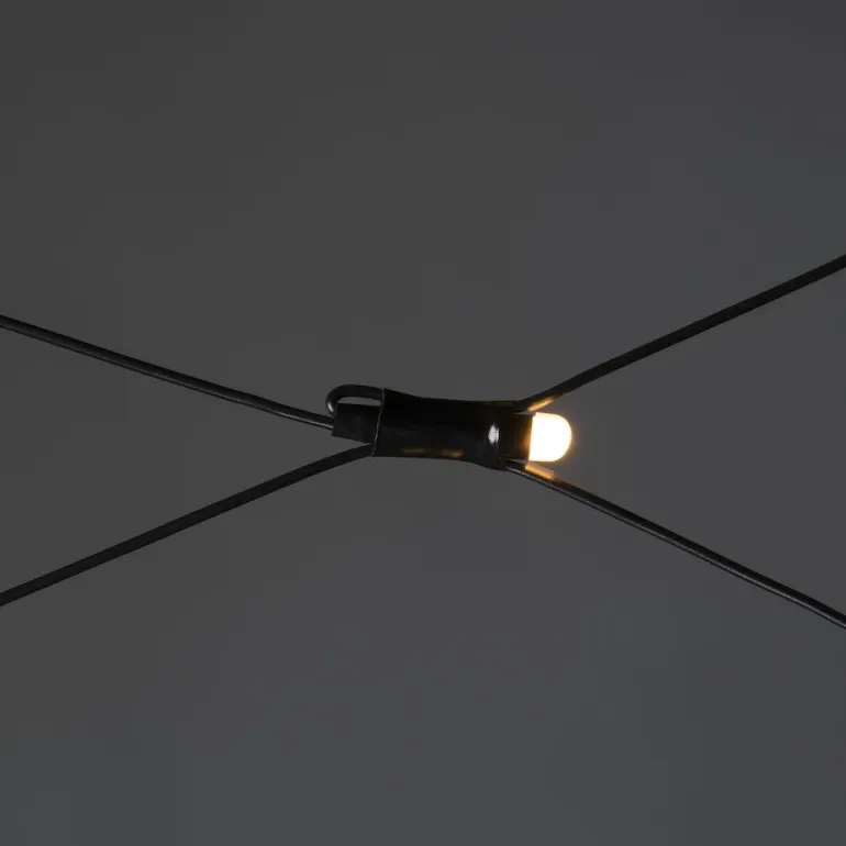2×2 metrin verkkoa on helppo käyttää ja varastoida. Verkko on mukautettu ulkokäyttöön ja se koostuu 64 huurretusta LED-lampusta lämpimässä keltaisessa sävyssä.