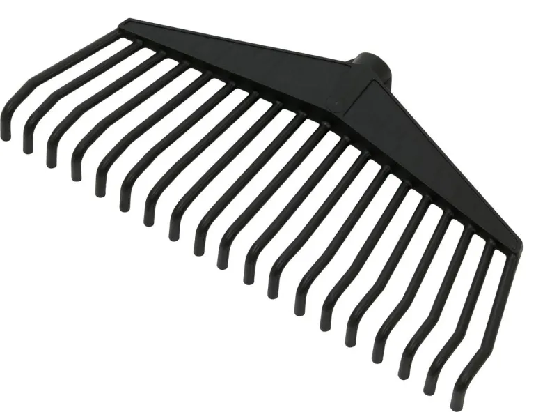 Yksinkertainen lehtiharava, jossa 19 muovista piikkiä.