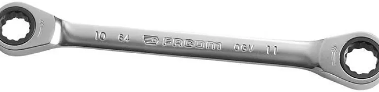 Facom 64.10X11 on suora kiintolenkkiavain, räikkätoiminto. Avainkoot 10 mm ja 11 mm. Räikkäkulma 5°.