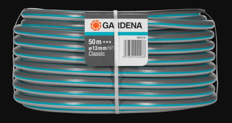 GARDENA Classic on 50 m pitkä, paineenkestävä letku, jonka halkaisija on 13 mm ja joka säilyttää muotonsa korkealaatuisten materiaalien ansiosta. Letku ei sisällä haitallisia pehmentimiä (ftalaatteja) eikä raskasmetalleja ja kestää UV-säteilyä. Tarvittaessa letkua voi täydentää järjestelmällisesti alkuperäisillä GARDENA-järjestelmän osilla ja liittimillä. Nämä ovat parhaat edellytykset letkun mukavalle ja joustavalle käytölle puutarhassa.