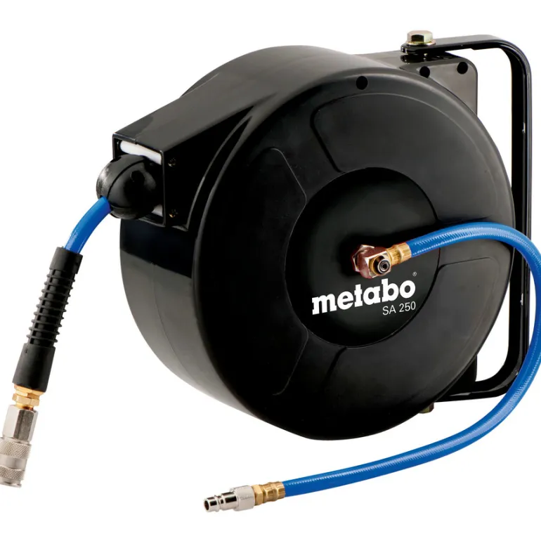 Metabo 628820000 -letkukela, enimmäispaine 15 bar. Letku on 8 metriä pitkä, ja sen ulko-Ø on 12 mm.