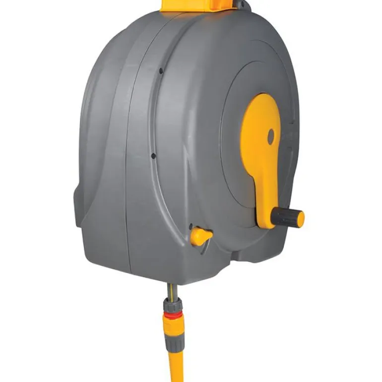 Kelassa on myös sisäänrakennettu turvasalpa, joka estää virheellisen käytön. Ainutlaatuinen automaattinen kerrosjärjestelmä yhdistettynä suureen kampikahvaan takaa letkun nopean, helpon ja jännityksettömän sisäänkelauksen käsiä likaamatta. Lisäksi kokoontaitettava kantokahva tekee letkukelan täysin kannettavaksi, jos et halua ripustaa sitä seinälle. Toimitetaan täysin koottuna.