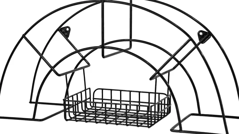 Ruotsalainen letkunpidike, kapasiteetti jopa 60 m letkua, pieni säilytyskori suuttimille ja liittimille.