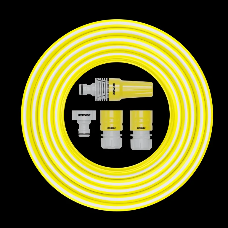 Kierretty puutarhaletkupakkaus, 3 kerrosta, 1/2″ (12,5mm). Sisusta musta sileä PVC käsiteltynä levää hylkivästi ja ulkopuolelta vihreä. Suurin työpaine 8 baaria ja voidaan käyttää lämpötiloissa -10°C – +50°C. Toimitetaan yhdessä 4-osaisen liitinsarjan kanssa sisältäen ruuviliittimen, nopean liittimen, pysäyttimen ja suihkusuuttimen. Paino: 120 g/m.