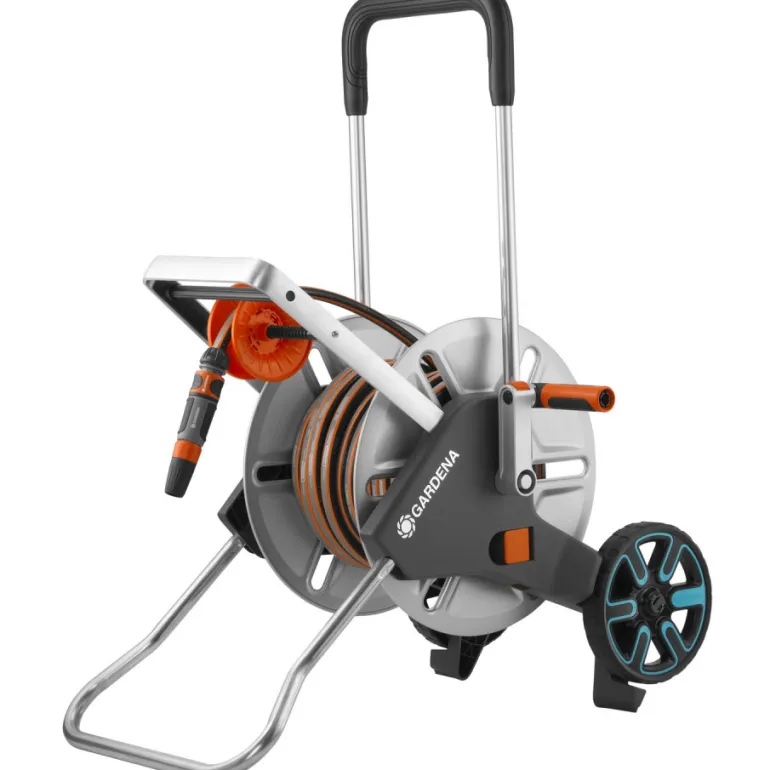 Vankka letkuvaunu, joka kestää kovaakin käyttöä puutarhassa. Mahdollistaa tilaa säästävän puutarhaletkun säilytyksen ja on mukava käyttää. Sisältää 25 metrin Comfort FLEX -letkun Ø 13 mm, Original Gardena -järjestelmän osat ja ruiskusuuttimen.