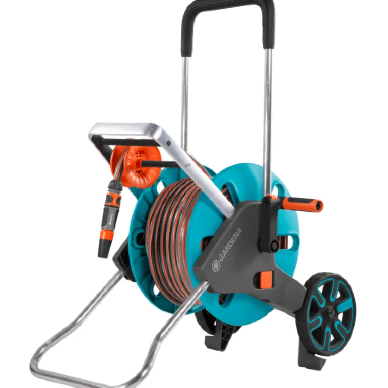 GARDENA AquaRoll M Easy on letkuvaunu, joka säästää tilaa puutarhaletkun säilytyksessä. Tukevan letkunohjaimen ansiosta letkun kelaaminen sujuu vaivattomasti ja mukavasti. Vaunussa on pehmeäpintainen ergonominen kampi, innovatiivinen jäätymisen kestävyys ja Anti-drip-pidike, joka estää veden vuotamisen kuljetuksen aikana tai käytön jälkeen. Sisältää 30 metrin Flex-letkun Ø 13 mm ja Original GARDENA -järjestelmän tarvikkeet.