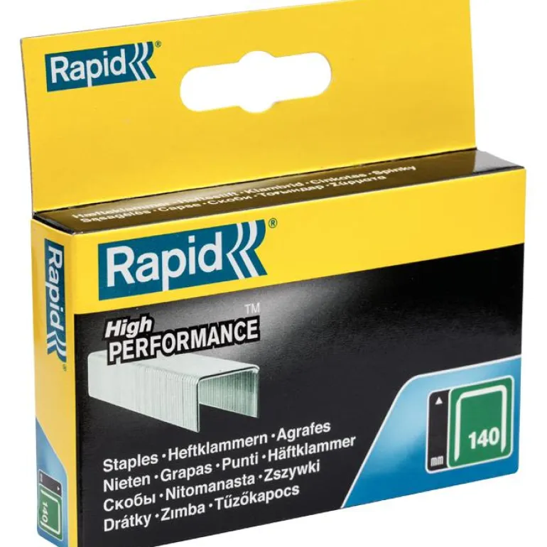 Leveitä niittejä (10 mm) ruostumattomasta teräksestä. Yhteensopivuus: Rapid R44, R64, R34, MS840, Alu 740, R211, R11, R54, E-TAC, CSN140 ja ESN114.