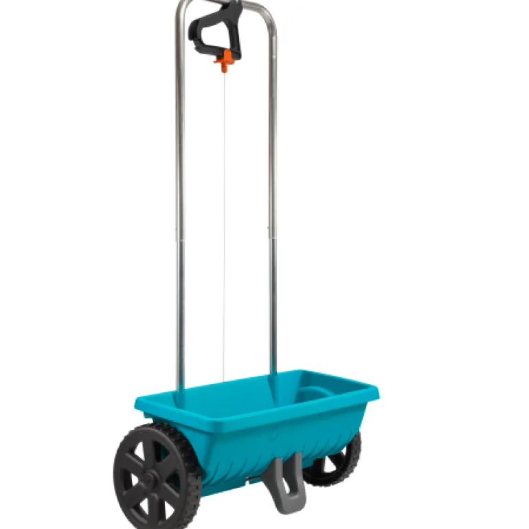 GARDENA 432-20 on levitin, joka sopii erinomaisesti esim. lannoitteiden ja maantiesuolan levittämiseen keskikoisille alueille. Levittimen leveys on 0,45 metriä ja tilavuus 12,5 litraa. Aisan yläosaan sijoitettu kahva tekee levityksen aloittamisesta ja lopettamisesta sekä määrän säätämisestä äärimmäisen helppoa. Lukittuva sulkulevy ja tiivistereuna sulkevat säiliön tiukasti. Suojakansi helppo tyhjentää ja puhdistaa (huuhdellaan vedellä). Innovatiivinen, erittäin joustava kaksiosainen levityssylinteri jakaa materiaalin tarkasti ja vain tarvittaessa.