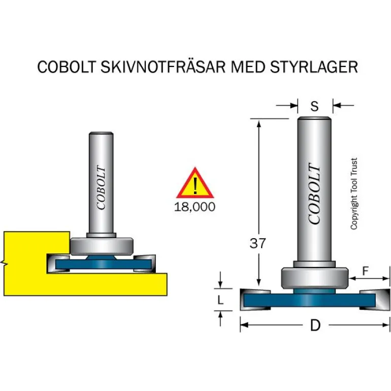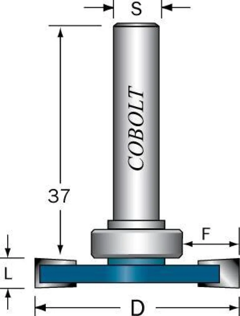 Cobolt 213-8009 on kaksiteräinen levyurajyrsin, jossa on tasainen alapuoli ja ohjauslaakeri. L=8 mm, F=9 mm, D=36.
