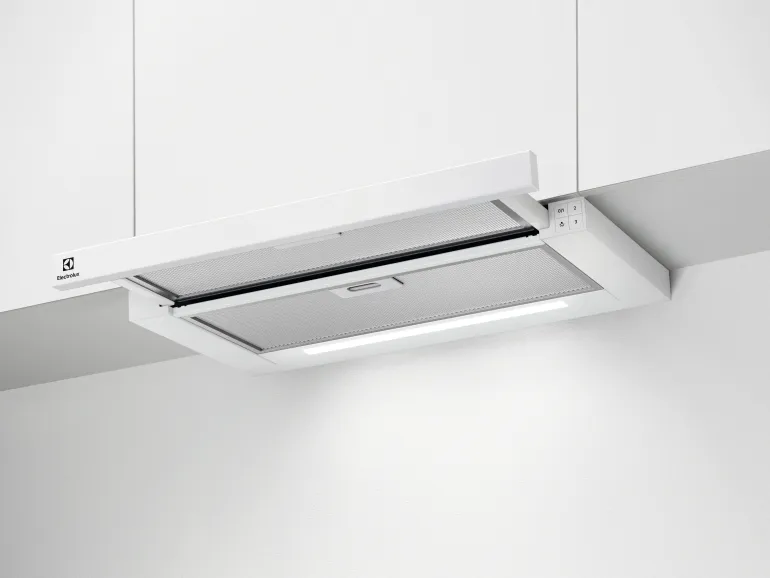 Electrolux LFP416W on 300-sarjan ulosvedettävä liesituuletin kahdella vaihtoehtoisella käyttötavalla: asennus hormiin tai kiertoilmatoimisena. Aktiivihiilisuodatin lisävarusteena. 300 ExtractionTech Standard -liesituuletin poistaa ruoanvalmistuksen hajut keittiöstäsi tehokkaasti varmatoimisella moottorillaan. Nauti miellyttävän raikkaasta ilmasta aina ruokaa valmistaessasi. Liesituuletin sisältää varmatoimisen moottorin, joka poistaa hajut tehokkaasti aterioita valmistaessa. Keittiösi säilyy raikkaana ja puhtaana ja ruoanvalmistus sujuu mukavammin joka päivä. Pure Illumination -valaistus tarjoaa intensiivisen ja kestävän valaistuksen, joka takaa täydellisen näkyvyyden ruoanlaiton aikana. Energiatehokkaat LED-valot valaisevat koko keittotason, joten aterian valmistuksen kaikki yksityiskohdat on helppo nähdä. Liesituulettimessa on käteväksi suunniteltu ja luotettava rasvasuodatin, joka on helppo puhdistaa käsin tai astianpesukoneessa, jolloin keittiösi pysyy raikkaana ja liesituuletin toimii parhaalla mahdollisella tavalla.