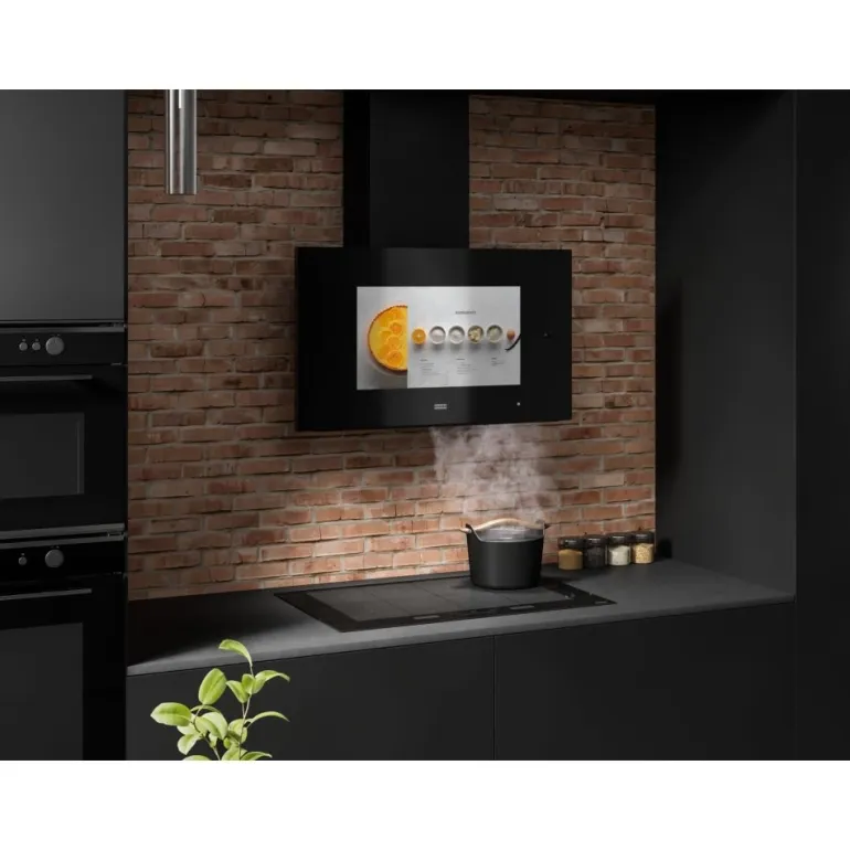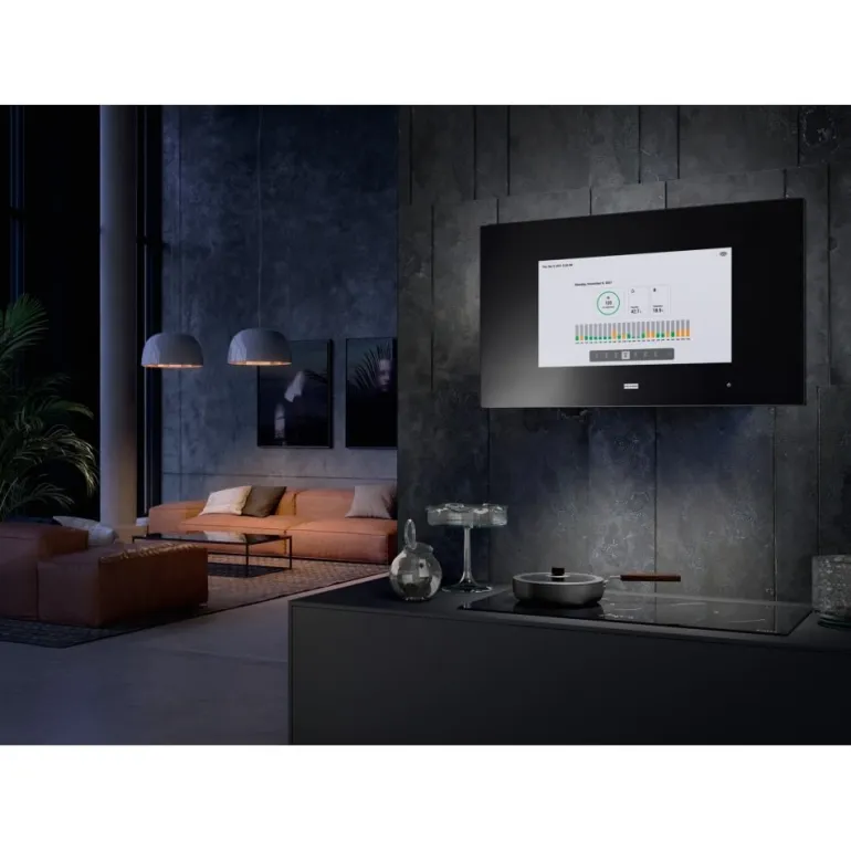 Franke AQ Sense on liesituuletin innovatiivisilla toiminnoilla ja 21,5″ kosketusnäytöllä. Sen avulla voit helposti selata internetiä, katsoa videoita ja kuunnella musiikkia sisäänrakennettujen kaiuttimien kautta. Liesituuletinta voi ohjata kolmella tavalla: äänikomennoilla, mobiilisovelluksella tai kosketusnäytön kautta. AQ Sense -liesituuletin on lisäksi varustettu sensorilla, joka mittaa ja reagoi keittiön ilmanlaatuun.