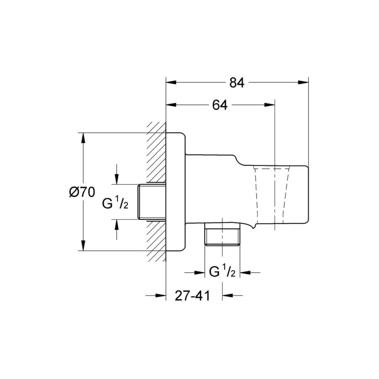 Relexa-seinäliitin, DN 15, suihkupidikkeellä seinään. Ulkokierre GROHE StarLight -kromipinnalla.