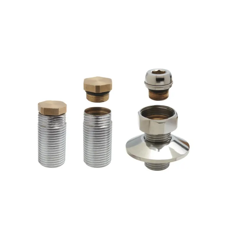 Suora kromattu liitäntäkytkin seinään, M34 x 1,5 -sisäkierre ja G20-ulkokierre sekä peitelevy (Ø 59 mm).