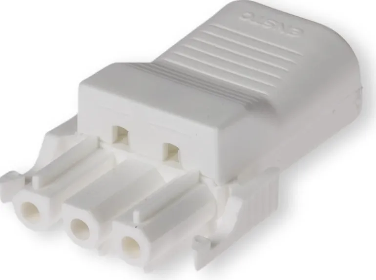 3-napainen Enstonet-liitin yksi-, harva- ja monilankajohtimille 0,75-4,0 mm². Jännitteenpoisto kaapeleille, joiden ulkohalkaisija on 5,5-12,0 mm.