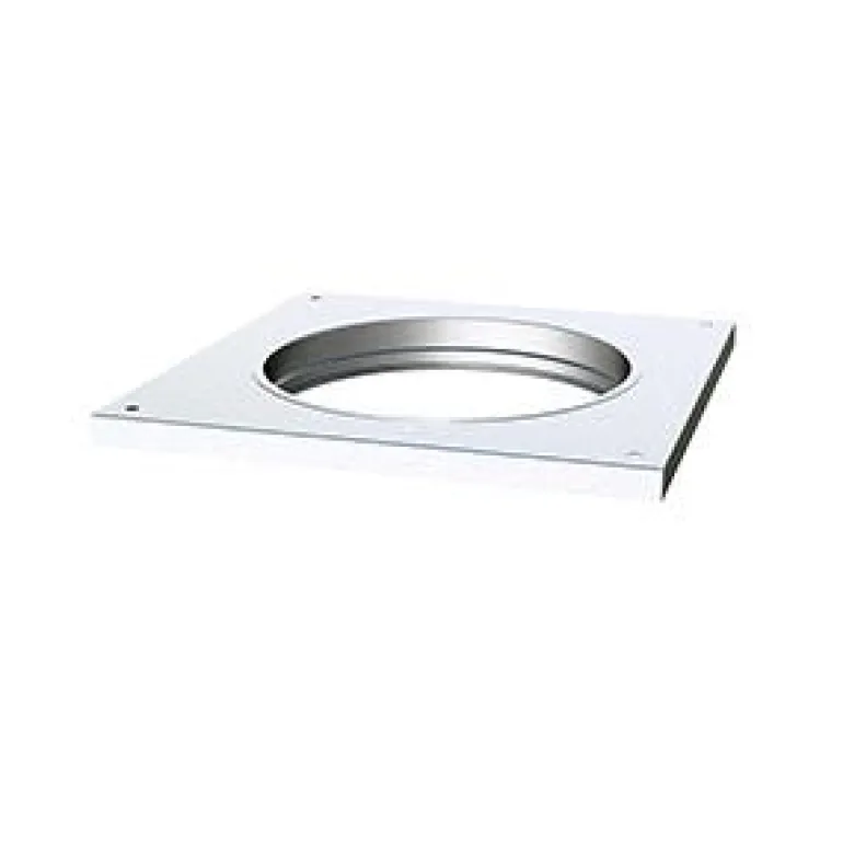 Liitäntälevy, jossa pyöreä kanavaliitin, valmistettu sinkitystä teräslevystä. Saatavana kaikissa ko’oissa TFU:lle.
