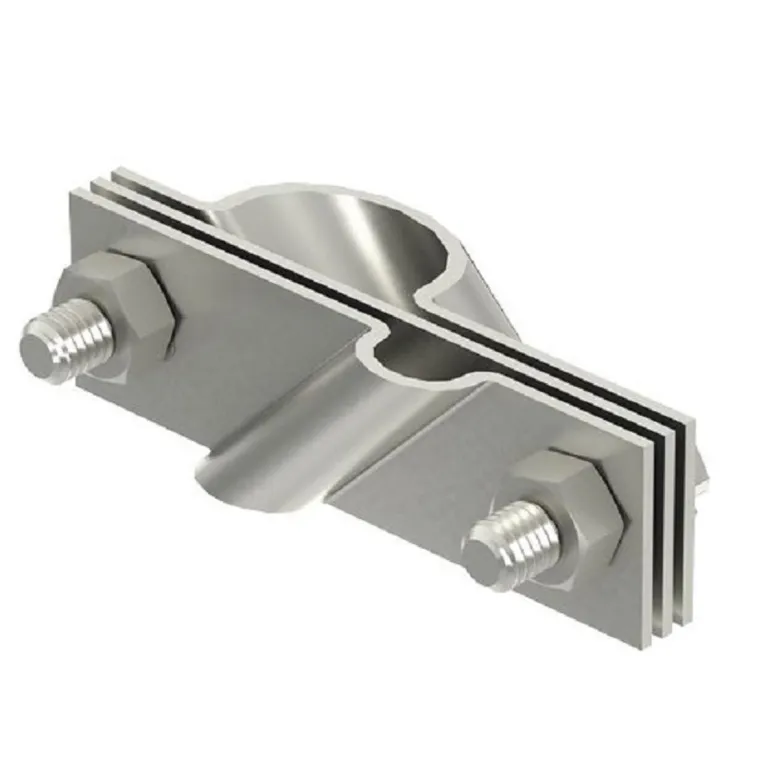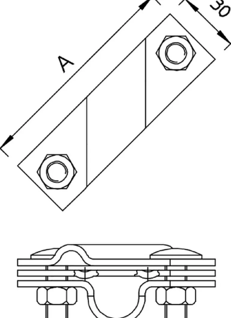 Maadoitussauvan yleinen liitäntäpidike. Soveltuu pyöröjohtimien Rd 8-10 ja jopa FL 40-lattajohtimien liittämiseen. Mukana välilevy. Asennetaan 2 kuusiokoloruuvilla M10 x 30 ja 2 kuusiokolomutterilla M10.