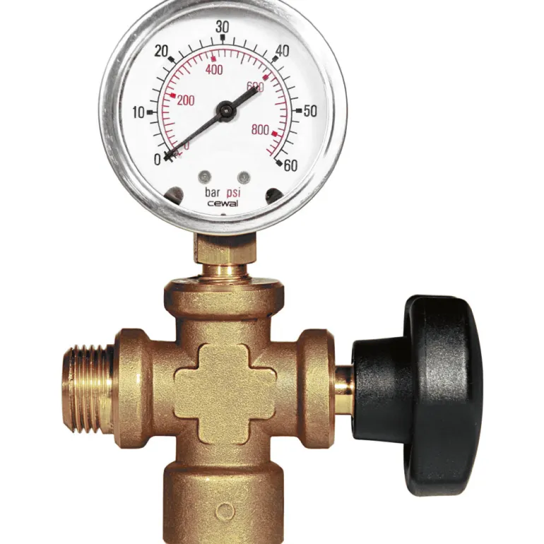 REMS 115110 R on liitin, jossa on manometri ja sulkuventtiili. Paine p ≤ 6 MPa/60 bar/870 psi.