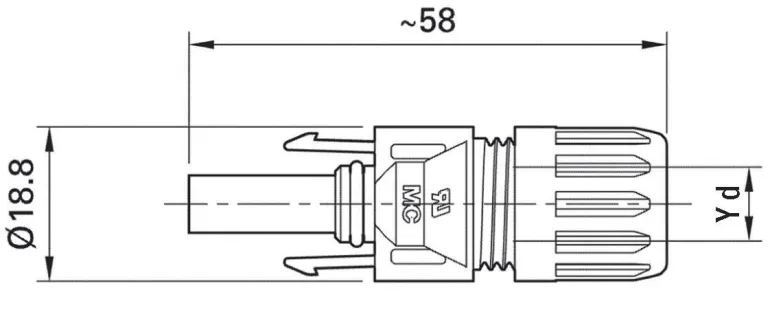 Liitin (naaras) aurinkosähköasennuksiin. Sopii kaapeleille, joiden halkaisija on 5,9–8,8 mm.