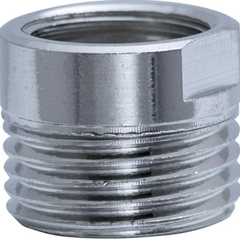 Trio Perfekta 970535 on kromattu messinkinen liitosnippa. Mukana tiiviste. Ulkokierre G15 toisessa päässä ja sisäkierre G10 toisessa päässä. Korkeus 17 mm.