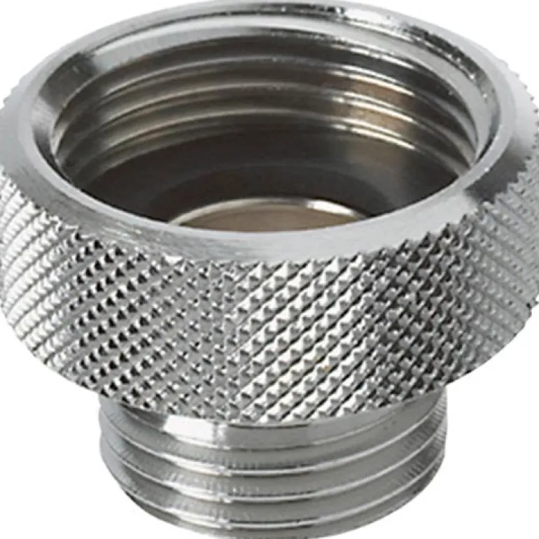 Kromattu liitosnippa, jossa on sisäkierre G20 ja ulkokierre G15. Mukana tiiviste.