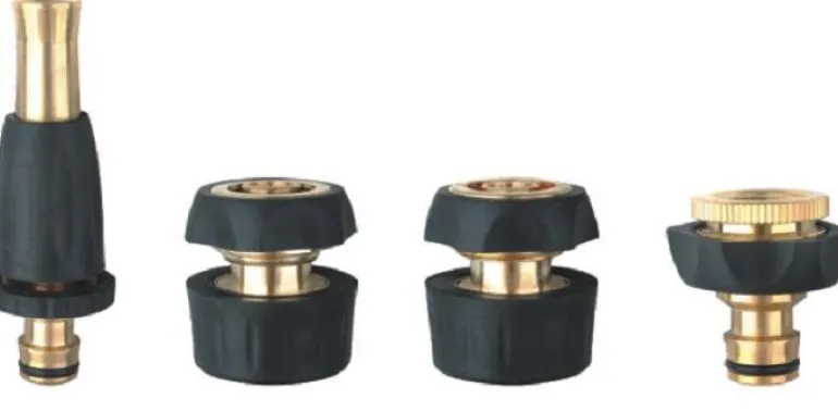 Neljä messinki-kumiliitintä. Sopii kovaan ja vaativaan käyttöön.