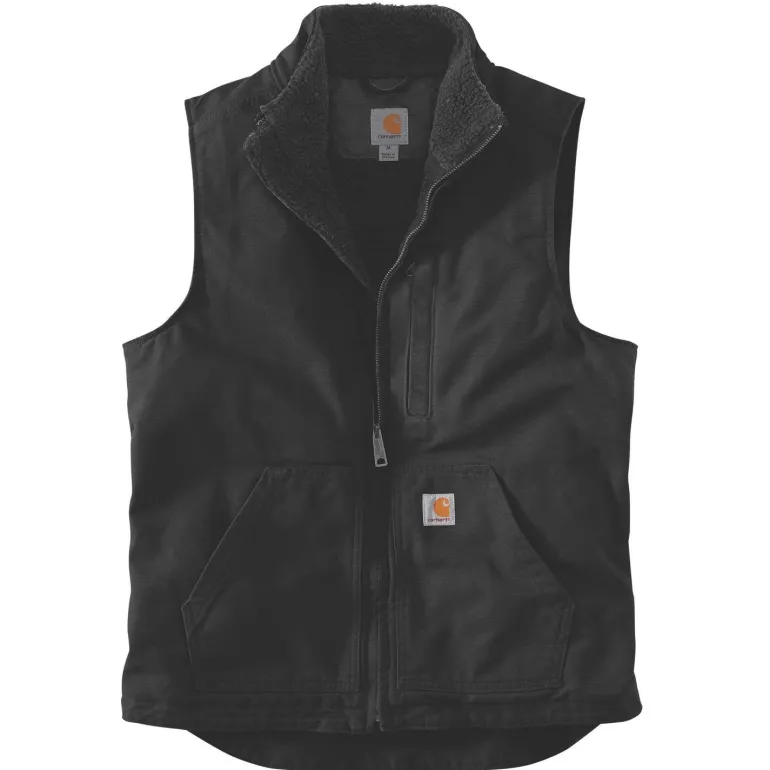 Vuorattu liivi, jossa vetoketju, kaksi etutaskua ja kolminkertaiset pääsaumat.