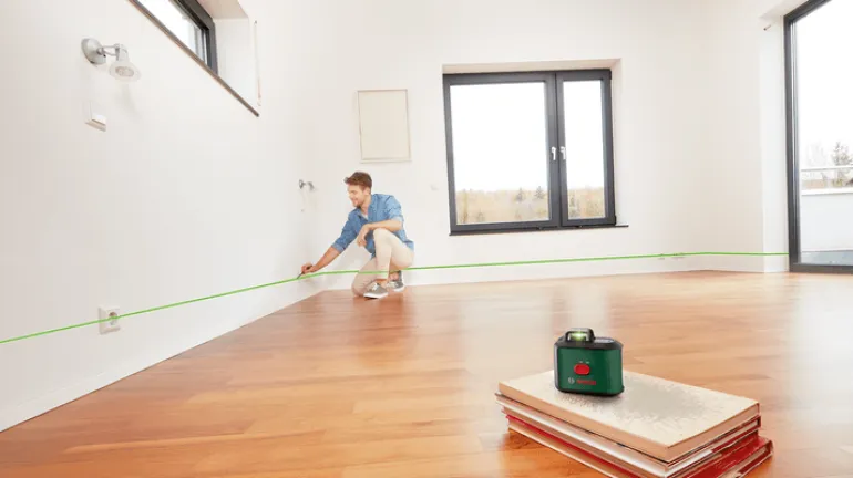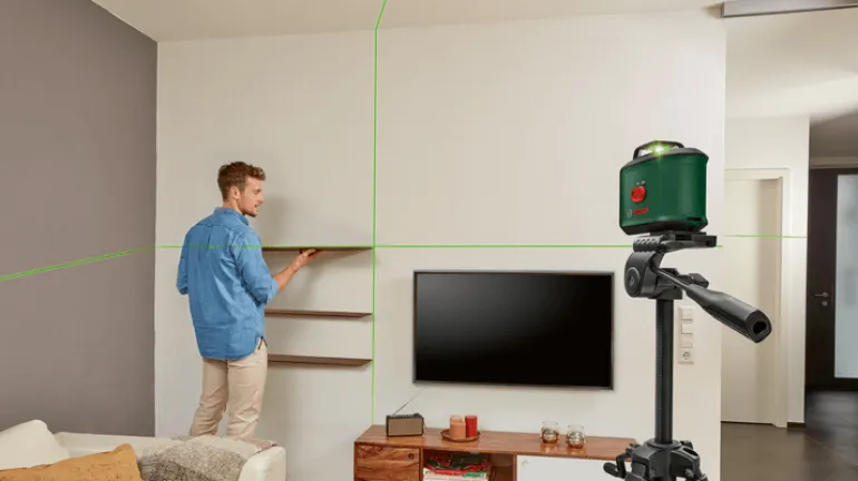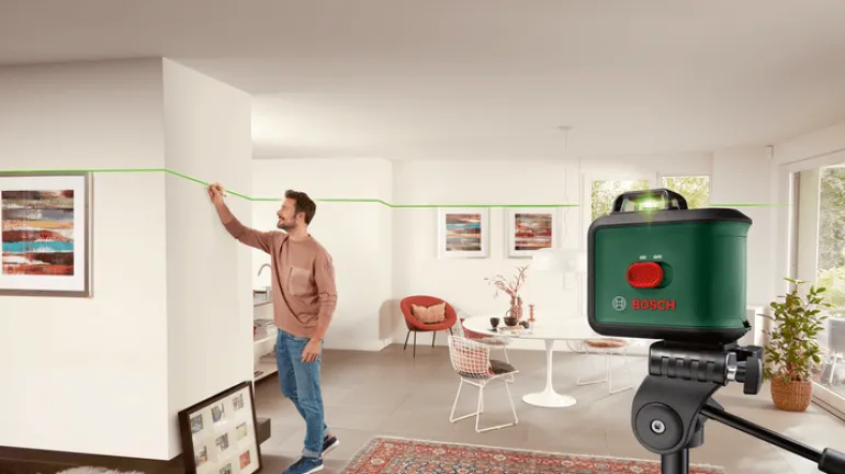 Bosch DIY UniversalLevel 360 on itsetasaava 360°:een linjalaser tarkkaan kohdistamiseen selkeästi näkyvällä laserlinjalla koko huoneessa. Tarkka, monipuolinen ja kätevä UniversalLevel 360 -linjalaser heijastaa selkeästi näkyvän laserinlinjan tarkkaan kohdistamiseen koko huoneessa. 360°:een vaakasuuntaisen ja 120°:een pystysuuntaisen laserlinjan itsetasaava projektio mahdollistaa kätevän ja nopean kohdistamisen. Laserteknologian vihreä valo parantaa huomattavasti näkyvyyttä ja varmistaa miellyttävän työskentelyn myös kirkkaassa valaistuksessa.