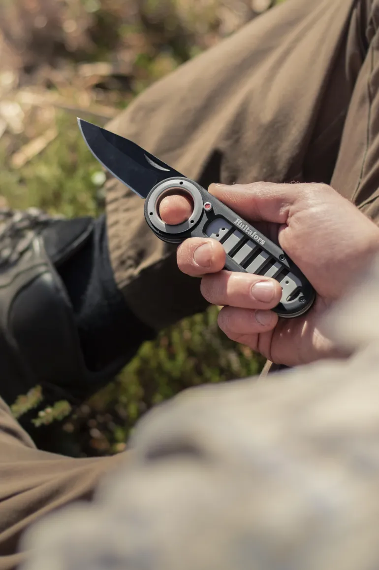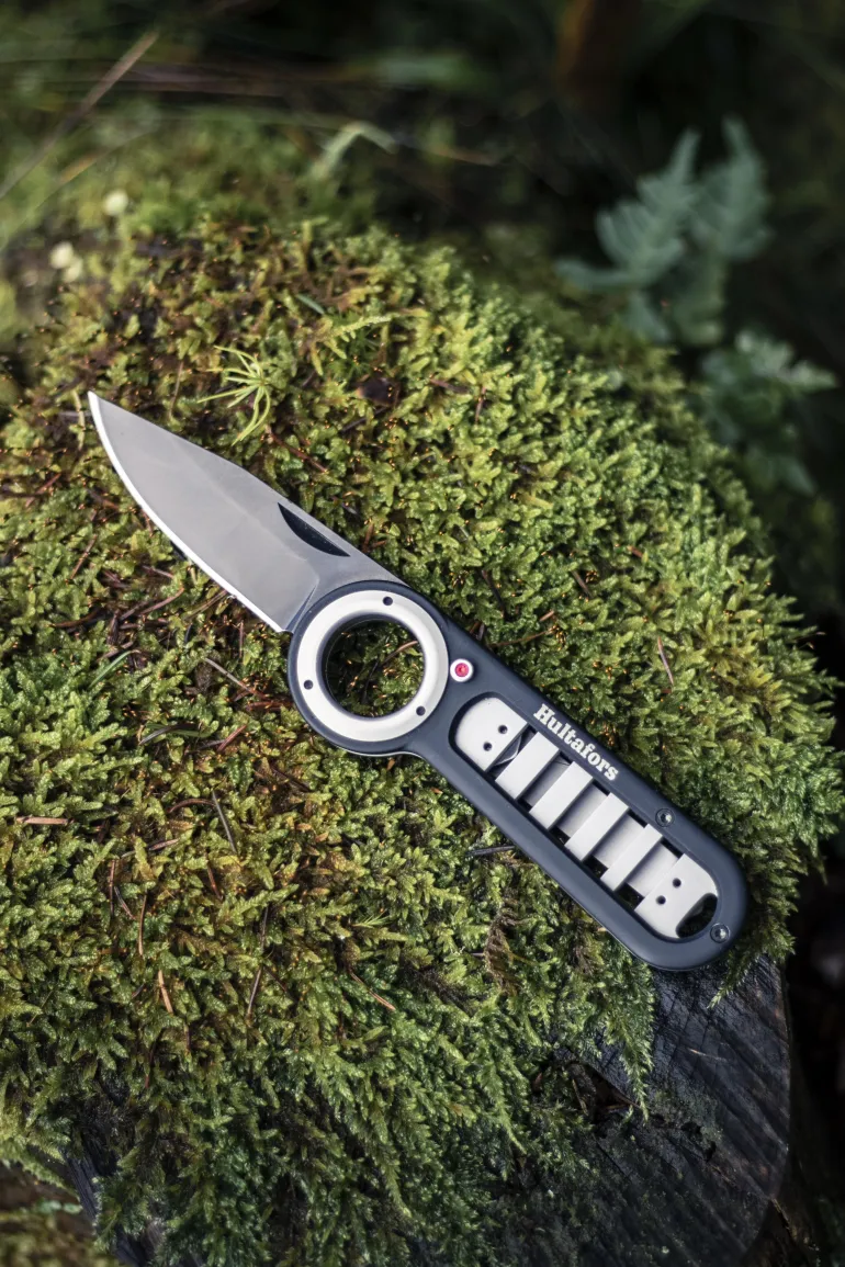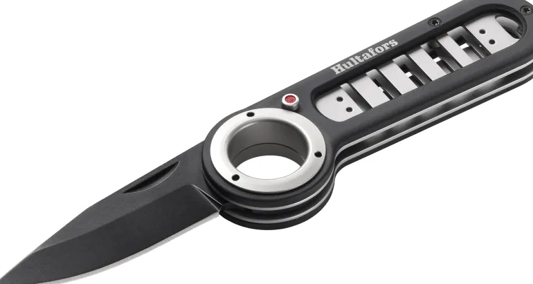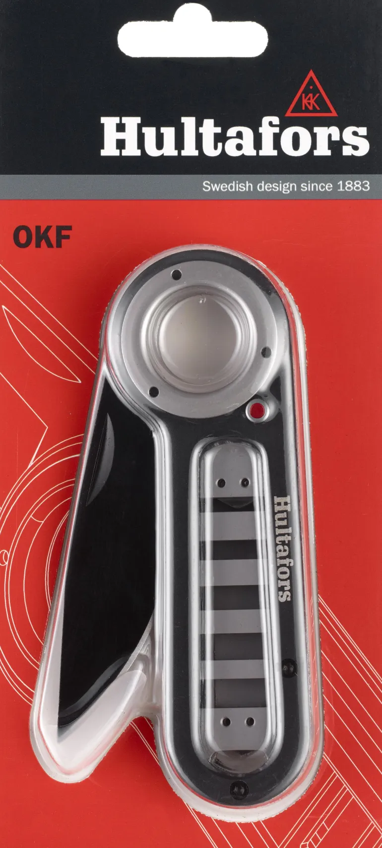 Hultafors OKF on vankka lakatusta alumiinista valmistettu linkkuveitsi, jossa on ruostumattomia yksityiskohtia ja jonka 2,8 mm paksu lakattu terä on ruostumatonta terästä. Täydellinen metsässä tai kalastusretkillä. Terän kompakti muotoilu tekee veitsestä erittäin monikäyttöisen. Terä lukittuu helposti ja turvallisesti kahvan sivussa olevalla painikkeella. Vyökiinnike on käännettävissä ja sen voi asentaa kahvan molemmille puolille. Näin voit halutessasi kantaa veistä esimerkiksi vyössä tai taskun sisällä. Veistä voi käyttää yhdessä Hultafors-sytytysraudan kanssa.