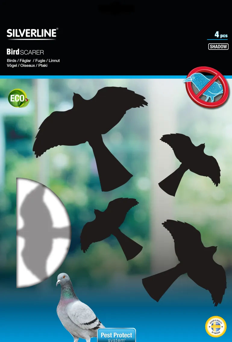 Silverline Shadow on lasipintaan liimattava varpushaukan mallinen linnunpelätin. Varpushaukka on pikkulintujen yleisin vihollinen, ja kun ne näkevät haukan varjokuvan, ne välttävät lentämästä kyseiseen suuntaan. Varjo on valmistettu säänkestävästä ja itsekiinnittyvästä mustasta muovista, ja se on helppo asentaa ja poistaa ilman jälkiä. Sisältää 4 kpl linnunpelättimiä.
