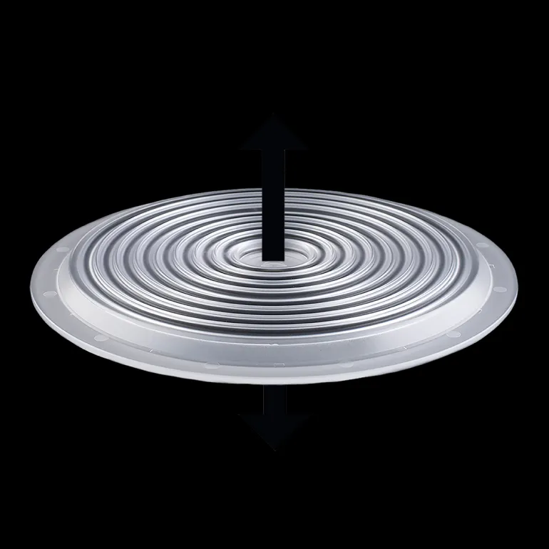 Linssi asennetaan Designlight Highbay -valaisimeen, jotta saadaan 60°:een hajonta tavallisen 120°:een hajonnan sijaan. Linssi soveltuu valon tarkentamiseen esimerkiksi silloin, kun valaisimet ovat erittäin korkealla tai kun vaaditaan erityisen suurta kirkkautta.