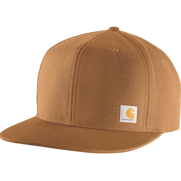 Carharttin puuvillalippis (Firm Duck, 100 % puuvillaa) litteällä lipalla ja Force™ FastDry™ -ominaisuudella, joka on suunniteltu ehkäisemään kosteuden ja epämiellyttävien hajujen muodostumista. Kangas tukevaa laatua. Hieman korkeampi High-profile -rakenne. Carhartt Force™ -hikinauha siirtää kosteutta. Snap back -säätö. Edessä Carhartt-logomerkki ja takana Carhartt-teksti ommeltuna.