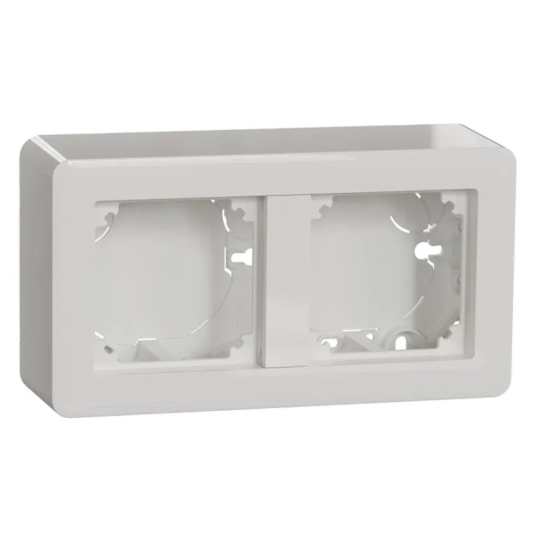 Schneider Exxact on lista-asennuskotelo pinta-asennukseen. Irrota pohja- ja kansiosa asennuksen helpottamiseksi. Runko on integroitu suojukseen siten, että erillistä Exxact-kehystä ei tarvita. Avaimenreikä asennettavaksi laiterasian c/c 60 mm päälle. Soveltuu kaikille Exxact 1-lokeroisille tuotteille. Tulot kaapeleille takaa pohjalevyn läpi tai kaikilta puolilta käyttäen aukkoja kannessa. Tuote on IP20 tai IP21, kun kaapeli asetetaan alhaalta. Mahdollista asentaa jännitteenpurku ja väliseinä.
