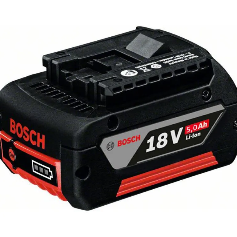 Bosch 18V:n, 5,0 Ah:n Li-Ion-akku. Sopii kaikkiin 18 V:n vakio- ja suuren tehon tuotteisiin.