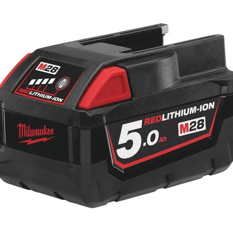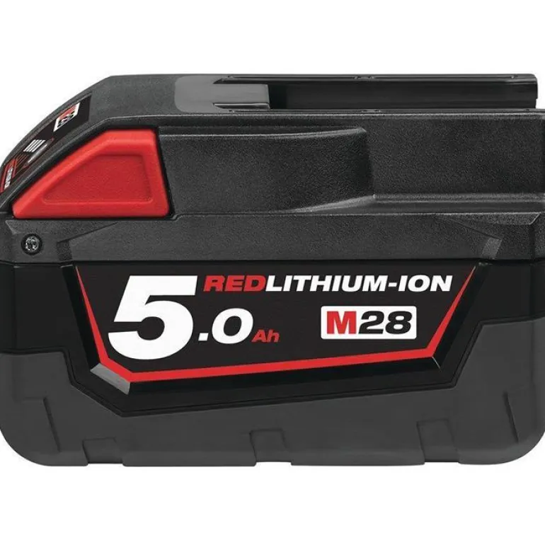 Milwaukee M28 B5 on 5,0 Ah:n 28 V:n litiumioniakku, joka sopii kaikkiin Milwauken akkukäyttöisiin 28 V:n työkaluihin.