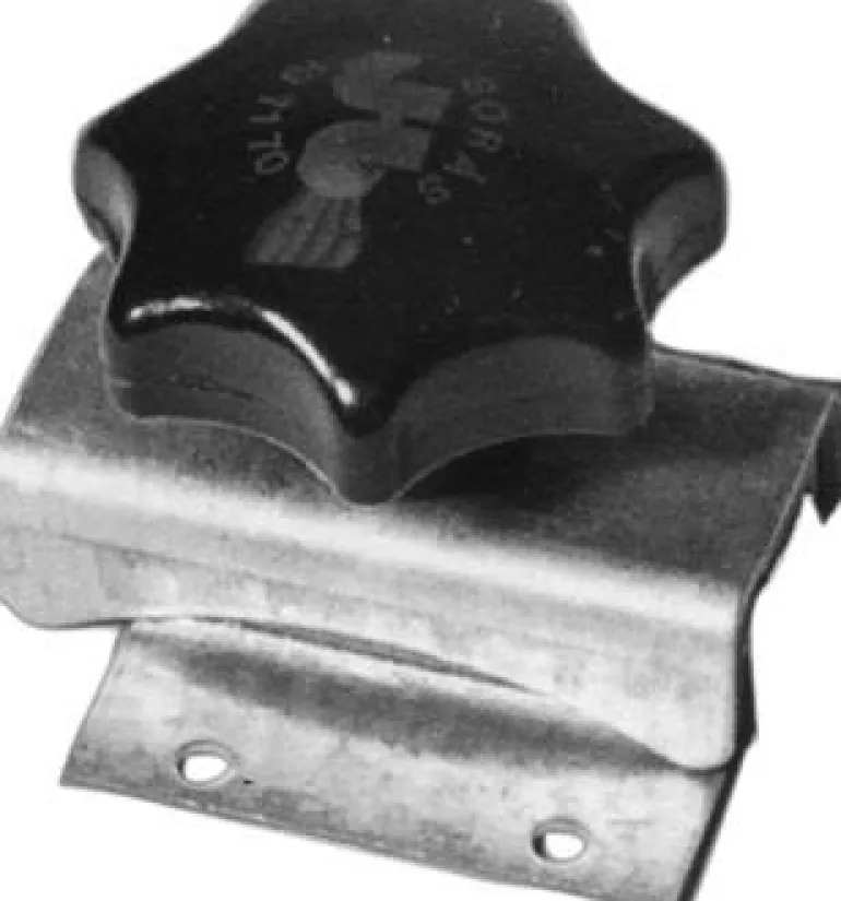 Tarkastusluukkuihin, oviin jne. Tukeva sinkitty teräspeltinen lukko muovisella (polyamidi) lukitusnupilla.