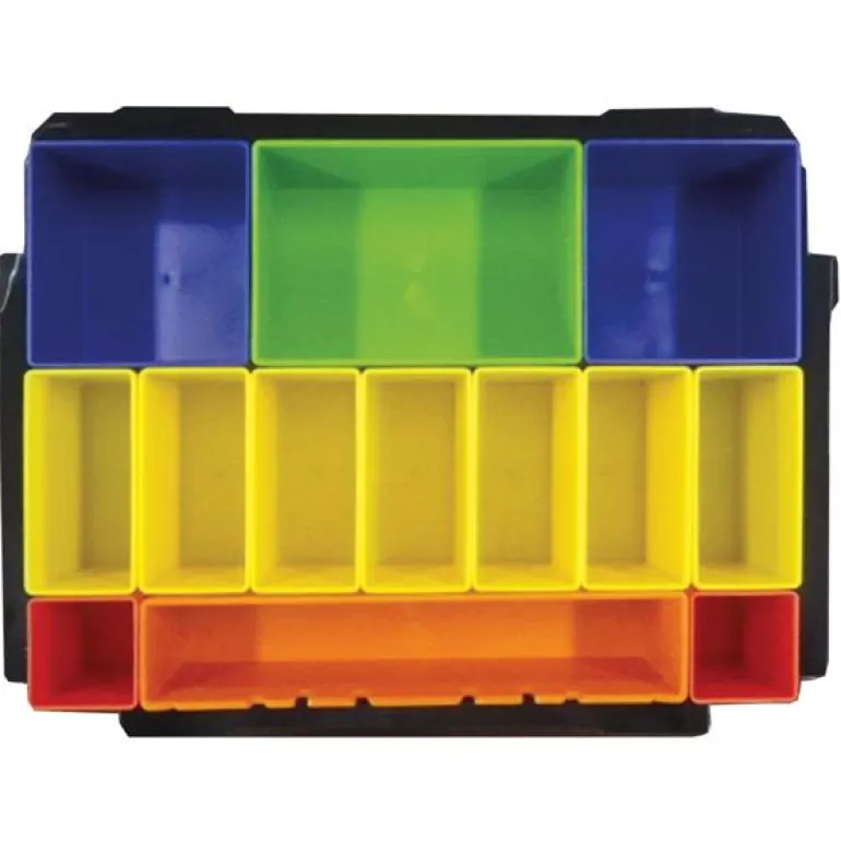 Sisusta muodostuu 13 pienestä laatikosta. Sopii Makita 821549-5 MAKPAC 1 -työkalulaukulle.