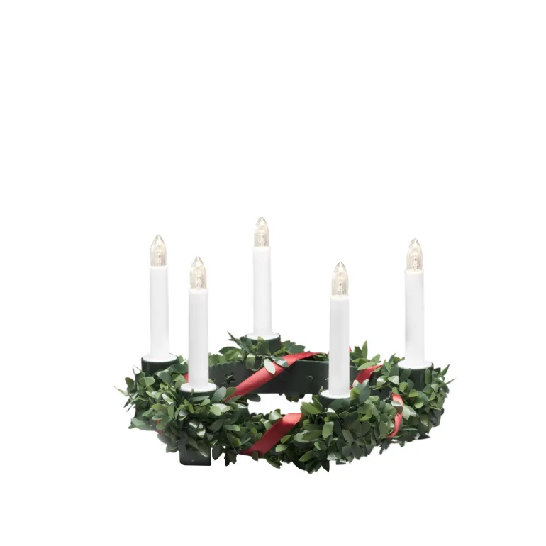 Konstsmide 1181-000 on Lucia-LED-kruunu (vihreä koristeilla, 5 LED-kynttilää), 5xAA.