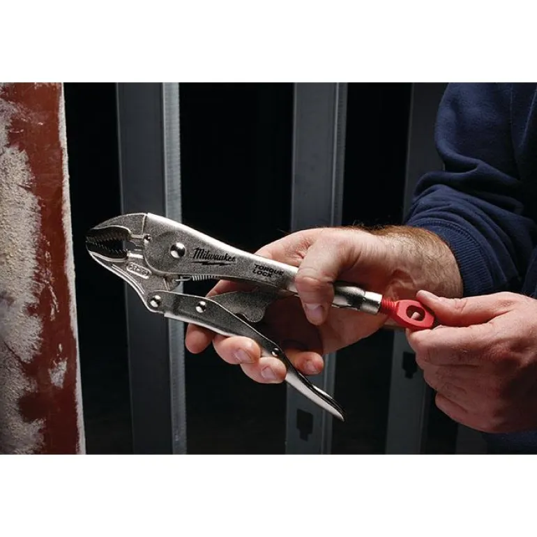 Milwaukee 4932471725 -pyöreät, kromatut lukkopihdit, kokonaispituus on 250 mm, ja leukakulma 51 mm putkille. TORQUE LOCK™ mahdollistaa sekä nopean kiristymisen että vapauttamisen. Koukku, jonka avulla voit säätää puristusvoimaa manuaalisesti. Koukkua voidaan käyttää myös työkalun ripustamiseen. Varustettu kovetetuilla, aggressiivisilla leuoilla maksimaalisen pitovoiman aikaansaamiseksi ja jousella, joka avaa leuat automaattisesti optimaalisen käyttömukavuuden takaamiseksi.