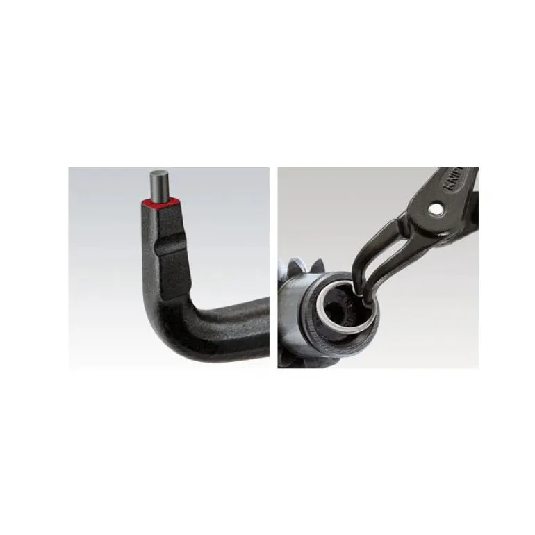 Lukkorengaspihti, jossa on taivutetut kärjet sisäpuolisille lukkorenkaille. ??Irrotettavan kappaleen muotoa myötäilevät, puristetusta jousiteräksestä valmistetut lukittavat nokat ovat käytössä turvallisia esimerkiksi juuttuneiden renkaiden irrottamisessa myös silloin, kun käyttäjä käyttää liiallista voimaa. Pihtien suuret kosketuspinnat ja kärkien sijainti estävät renkaita irtoamasta otteesta.