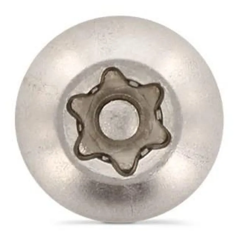 Matalapyöreäkantainen lukkoruuvi (TX + nasta). Ihanteellinen suoja satunnaisia varkaita vastaan, koska helppo irrottaminen estetään erityisellä asennustyökalulla. Työstettävä vain erityisellä terällä. Metrinen kierre. TX-PIN30 (ISO 7380).