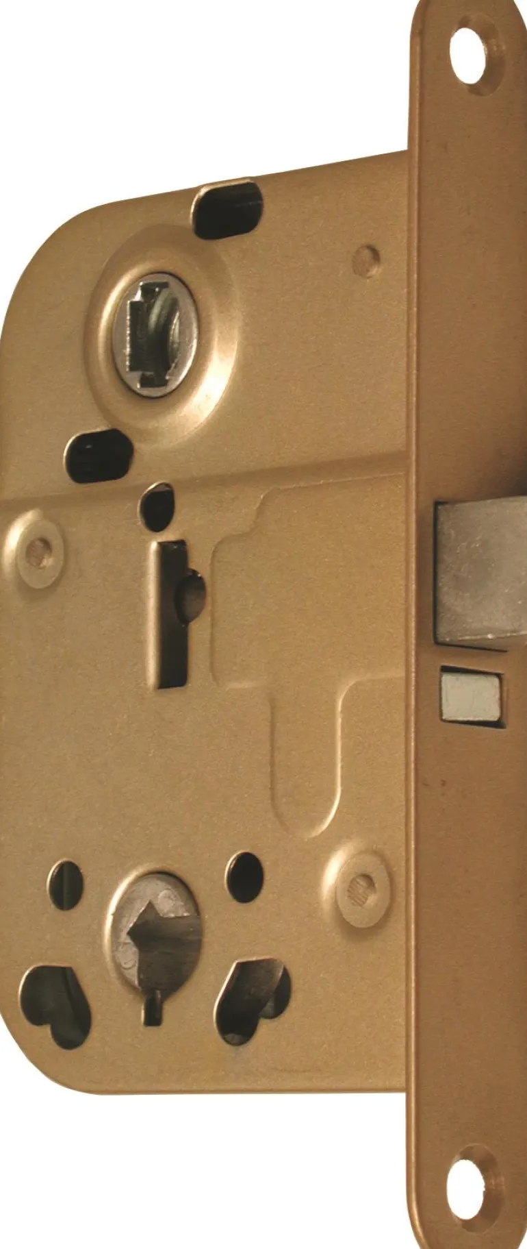 Symmetrinen monitoimilukko väli- ja WC-oville. Avaimenreikien väli 45 mm. Sisältää yhden avaimen.