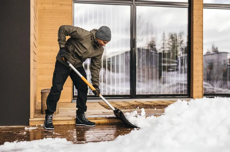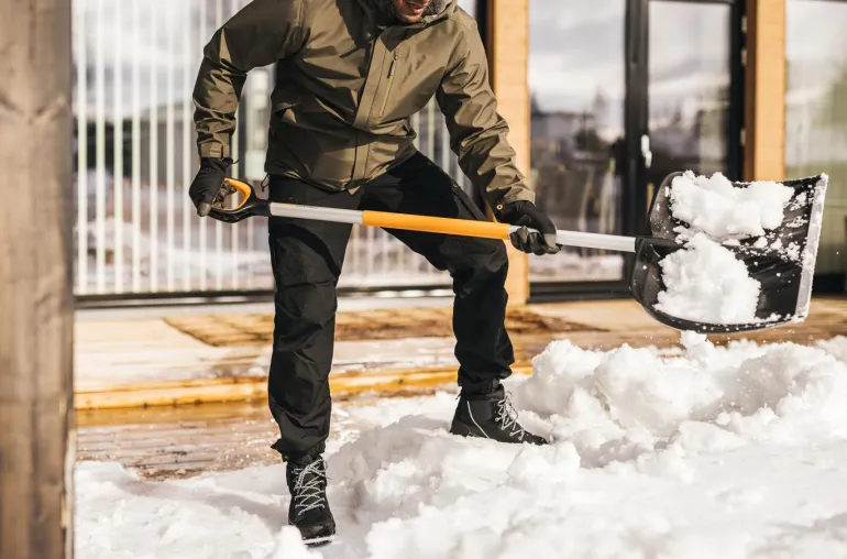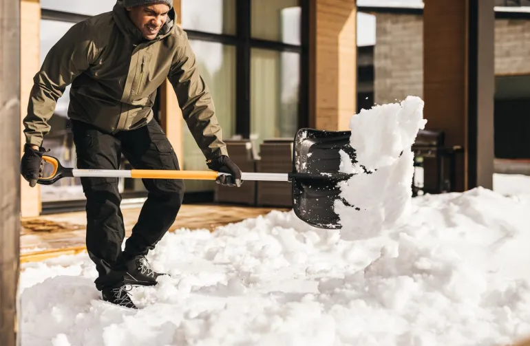 Lumentyönnin, jonka leveän kuuppaosan avulla poistat lumen nopeasti ja helposti esimerkiksi ajo- ja kävelyteiltä sekä pienemmiltä poluilta.