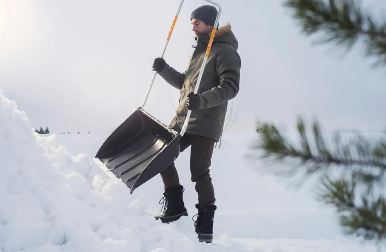 Lumikola ruiskupuristetulla kuuppaosalla, joka yhdistää keveyden ja lujuuden. Ergonomisesti muotoiltu ja teräsputkesta valmistettu aisa tekevät lumikolasta tukevan ja miellyttävän käyttä. Soveltuu tehokkaaseen lumenpoistoon laajemmiltakin alueilta.