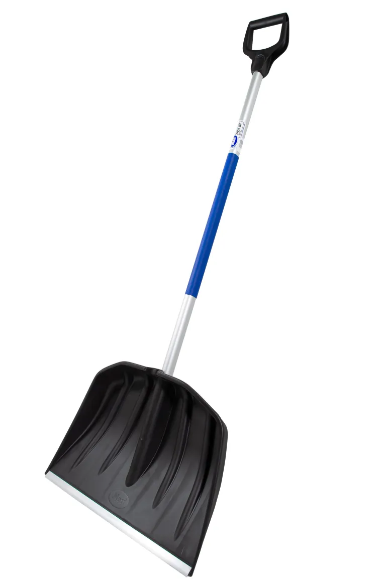 Vankka ja leveä lumilapio. Pitkä, litteän ovaali alumiinivarsi, jossa softtouch-pinnoite parempaa otetta ja ergonomisuutta varten.