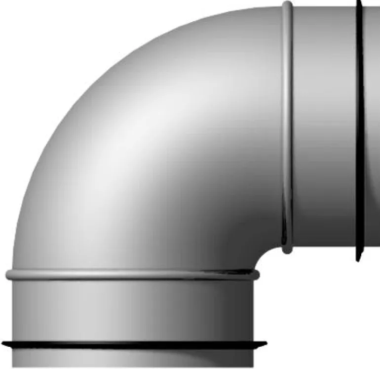 Lyhyt käyrä. Segmenteistä koottu tai puristettu koosta riippuen. Sisään painettava liitin (nippa) molemmilla puolilla.