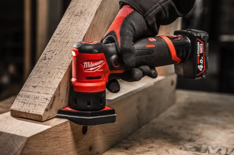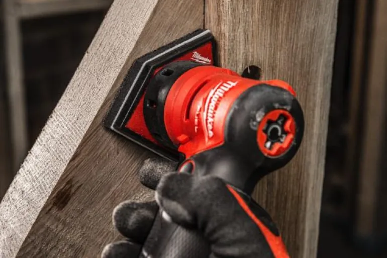 M12 FUEL™ -kärkihiomakoneessa on viisikulmainen hioma-alusta, minkä avulla käyttäjä pääsee käsiksi kaikkiin kulmiin. Mukana toimitettava pehmennystyyny toimii vaimentimena hioma-alustan ja -paperin välillä, mikä parantaa hiontatarkkuutta ja kestävyyttä.