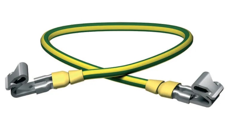 Sarja, joka sisältää maadoitusjohdon, litteänastaisen liittimen ja maadoituskappaleita. Käytetään kytkemäään etuosa ja kotelo yhteen.