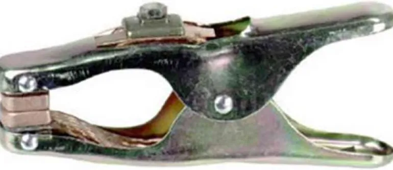 Vankkarakenteinen, vahvalla jousella varustettu maadoituspuristin.